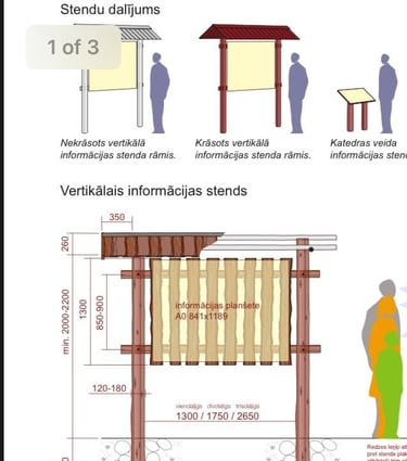 Izveidojam informācijas stendu konstrukcijas pēc īpaši aizsargāto dabas teritoriju vienotā stila.