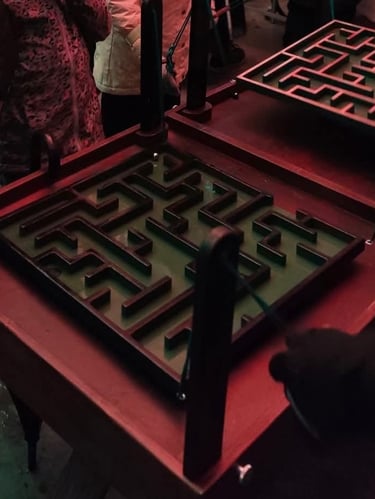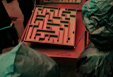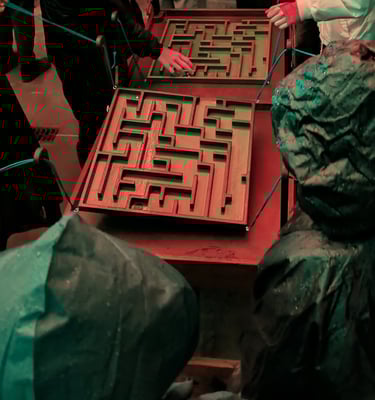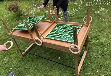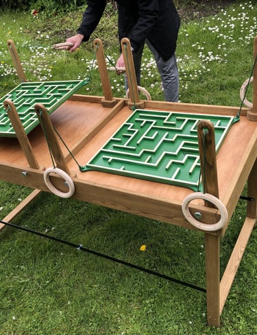 🧩 Aprīkojums: labirinta galds; 1 bumbiņa komandai .