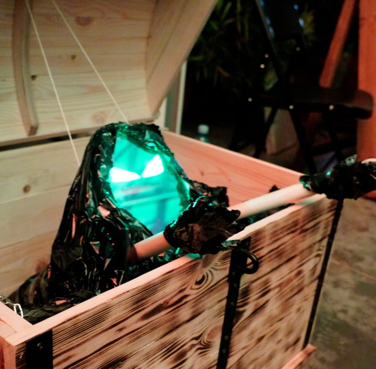 Spēļu rekvizīts: izmantojiet kā “dārgumu lādi” tematiskiem spēļu stacijām, kur viesiem jāatrisina mīkla vai jāpilda uzdevumi, lai iegūtu atslēgas daļu.
