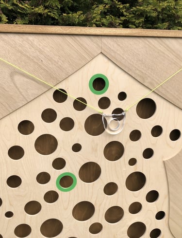 🧍♂️ Spēlētāji vai komandas spēlētāji velk virvi ar akrilu lai bumbiņa pārvietotos virsmu uz augšu neiekrītot caurumos.