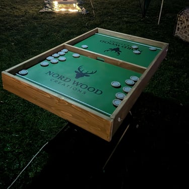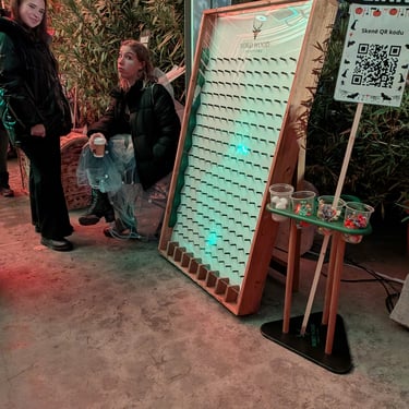 Lielā drūzmā mēs virzījām cilvēkus uz PLINKO loteriju, kur varēja laimēt 5 balvas, tostarp galveno — cornhole komplektu ar apdruku. Tas bija īsts hīts, un cilvēki ar aizrautību piedalījās, cerot uz veiksmi.