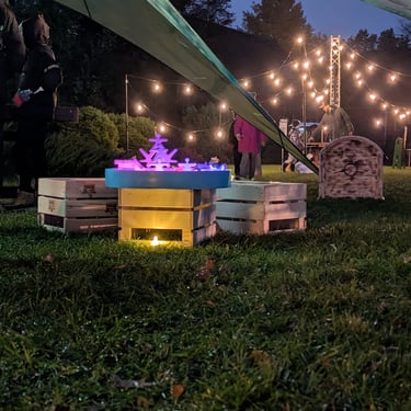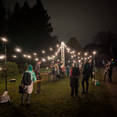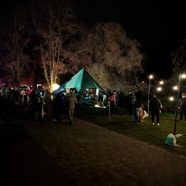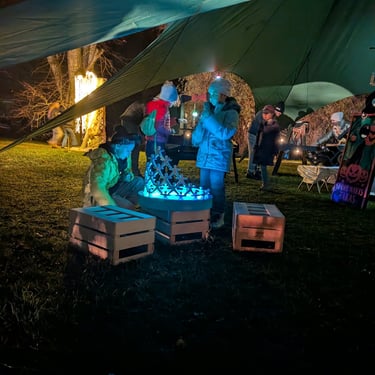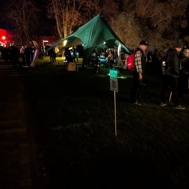 Dienu pirms pasākuma — 23. oktobrī — gulēt devāmies tikai ap 4:00 rītā. Miegs bija luksuss, bet rīts sākās rosīgi. Salikām visu divos auto, un paši sev par brīnumu — viss ietilpa busā un universālī. Brauciens uz Salaspili bija pilns cerību, un mūs sagaidīja jau sagatavota vieta ar telti, apgaismojumu un torni. Milzīgs paldies Anitai Hanzenai par iespēju piedalīties un par atbalstu ar telti, torni un gaismu — tas radīja īstu pasākuma sajūtu.