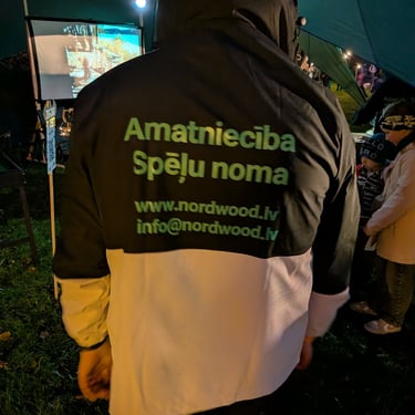 25. oktobris — diena, kas pierādīja, ka pat vislabākie plāni var tikt pārbaudīti līdz galējībai. Ja pirmā diena bija silta, dzīvīga un pilna smieklu, tad otrā bija īsta izdzīvošanas misija. No paša rīta lietus lija bez mitas, un laika prognozes solīja vēl vairāk — 100% nokrišņu visas dienas garumā. Mēs, Nordwood Creations komanda, bijām apņēmības pilni, bet arī piesardzīgi.