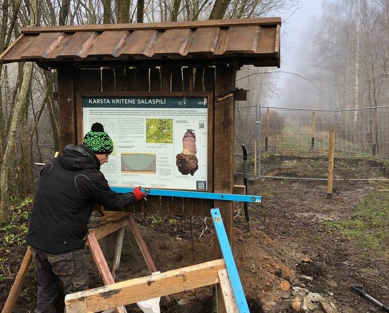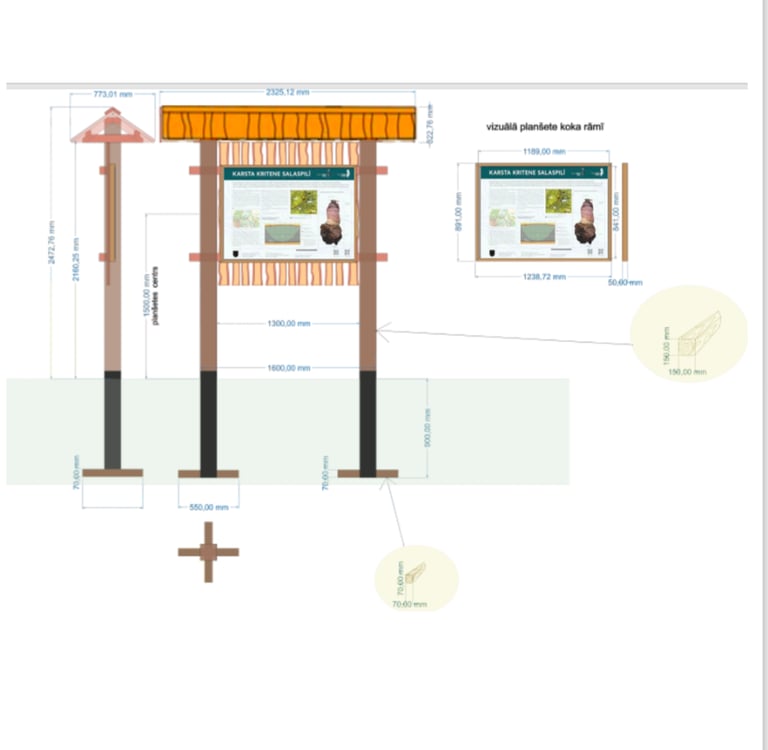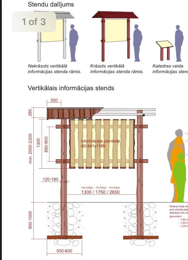 Izveidojam informācijas stendu konstrukcijas pēc īpaši aizsargāto dabas teritoriju vienotā stila.